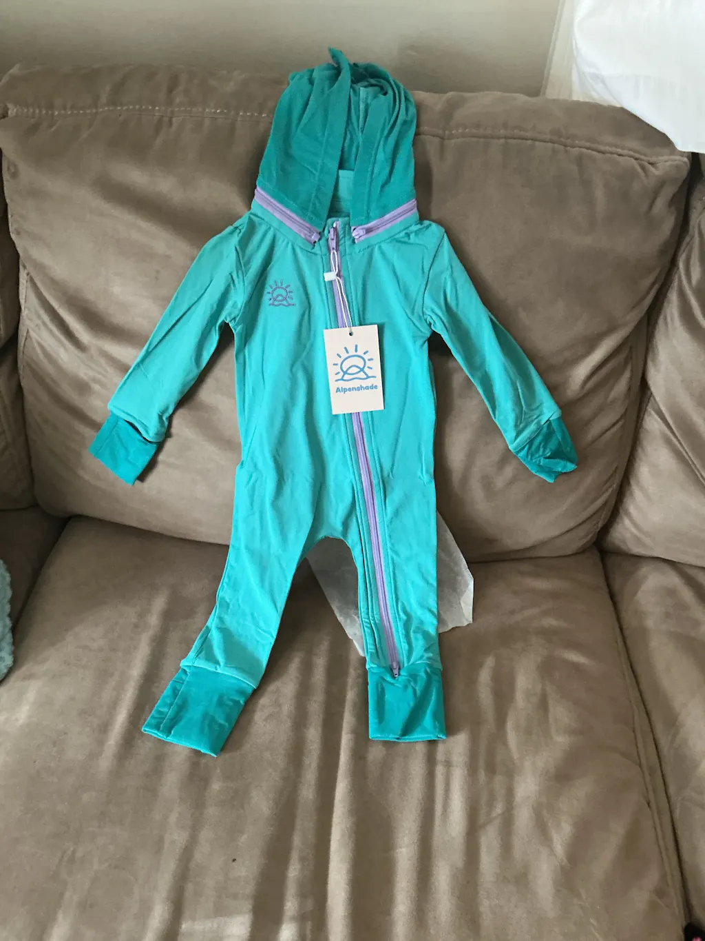 Best sunsuit ever! The material is so incredibly soft and my son loved wearing it. It protected him from the sun and he looked adorable. He did not mind wearing it and it was super easy to get on and off. We received many compliments when he wore it as well. The hood was nice because I could put it up over his sun hat to protect his neck more. The owner is quick to respond to emails. I had an issue that was on me and she was prompt and supportive. We cannot wait to continue to be able to be in the sun and have our little one protected from those UV ray,